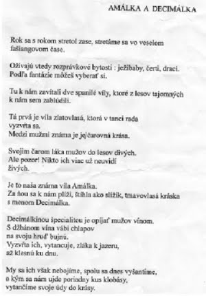 Problém bol len s programom. Vlaňajšia regionálna umelkyňa odmiertala vystupovať s tým, že si vlani poranila koleno a aj krídlo jej nejako ovislo. Svetová umelkyňa bola zas na svetovom turné. Čo robiť? Pracovníčky nezaváhali a zašli do lesa. No nie na drevo, ale poprosiť víly, či by neprišli trošku zatancovať aj do SNK. Nebáli sa, že by víly utancovali nejakého chlapa. Tento artikel je v SNK ešte stále dosť zriedkavý, ale v Oddelení doplňovania úplne absentuje. Po krátkom prehováraní si víly dali povedať a do Libressa zavítali dve z nich – Amálka a Decimálka. Ako sa im vodilo a či mali úspech si môžete pozrieť na videu.