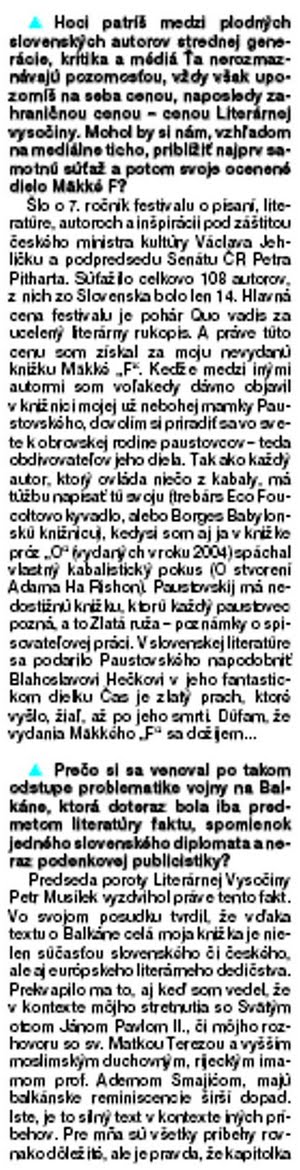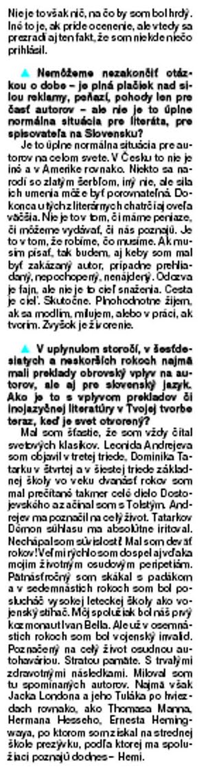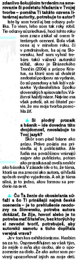 Pekny rozhovor čo vyšiel v slovenských národnych novinách číslo 36/2009